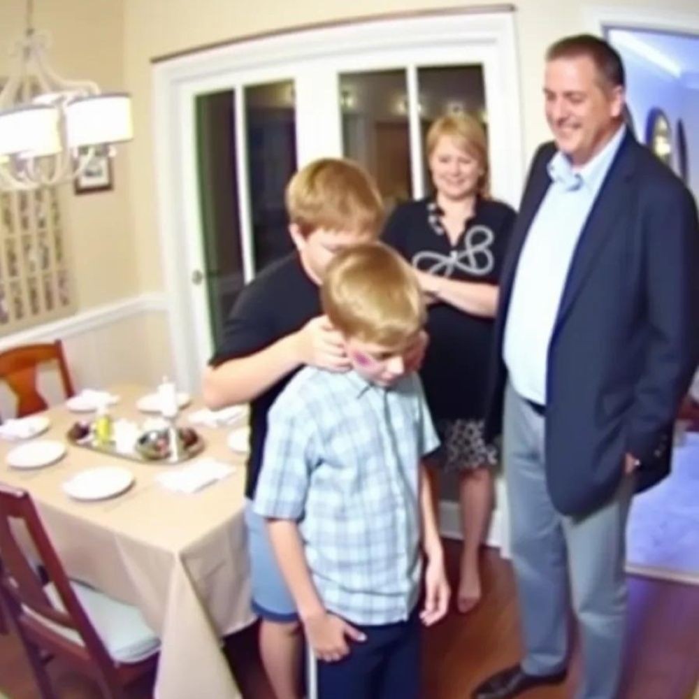Her husband, Eric, sat quietly at the far end, face unreadable, eyes flicking between his wife and son.